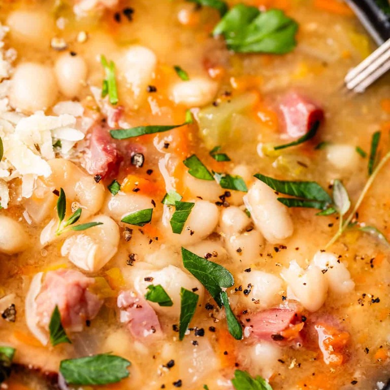 Sometimes nostalgia just hits you in the mouth right? That's what this recipe will do for you. It's pure comfort in a bowl. Homemade ham and bean soup is hearty and full of flavor, with a surprisingly short ingredient list for all the massive flavor it packs in. It's all about the ham bone, that stuff is magical. Save yours after Easter and turn it into this soup! (I have substitutes if you don't have a ham bone, don't stress). Make this in the slow cooker or stove top!