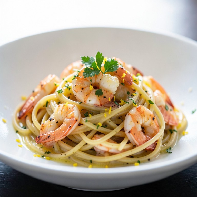 A bright and zesty dish featuring quick-cooking shrimp tossed with delicate angel hair pasta, aromatic garlic, and fresh herbs in a luxurious butter sauce.