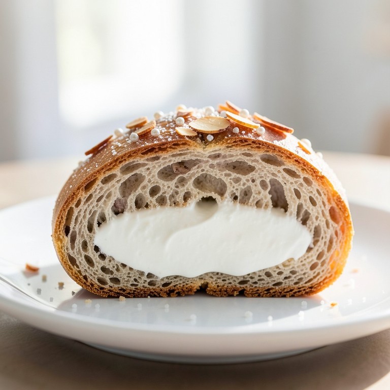 A nutritious twist on the classic French dessert, featuring a soft whole wheat brioche bun filled with a light, tangy, and protein-rich Greek yogurt cream infused with delicate orange blossom.