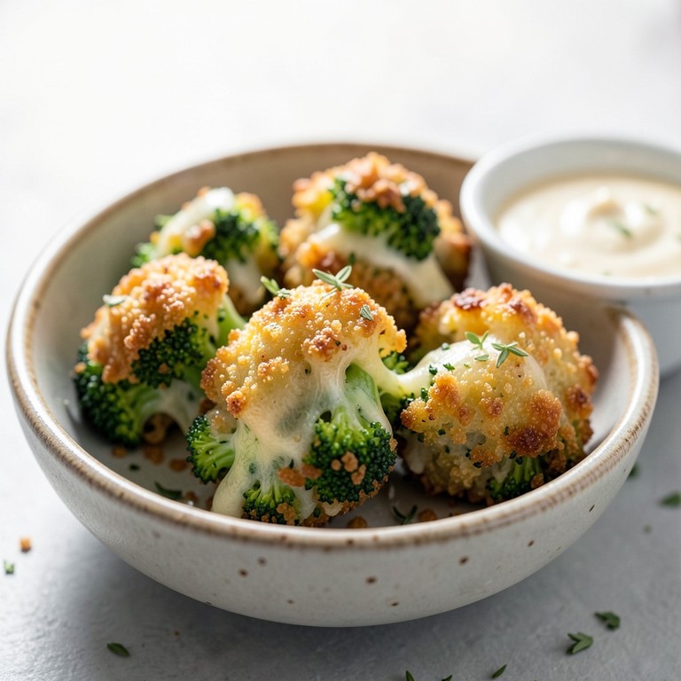 Pequenos floretes de brócolis envolvidos em uma mistura crocante de queijos, perfeitos para um lanche saudável, vegetariano e muito rápido de preparar na airfryer.