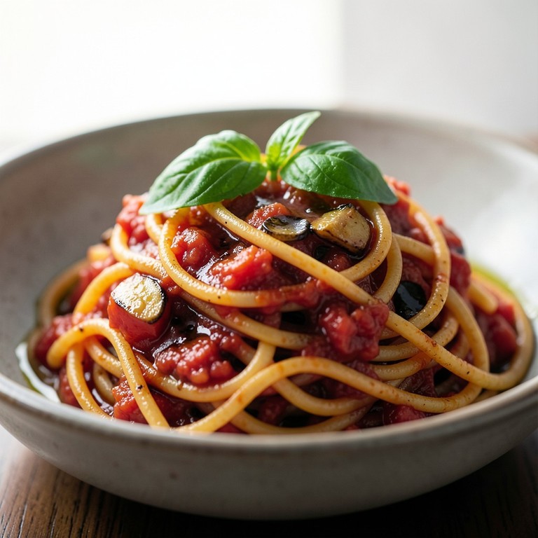 Um clássico reconfortante feito com molho de tomate caseiro, pedaços rústicos de tomate e um toque especial de molho barbecue para um sabor defumado, finalizado com bastante alho dourado.