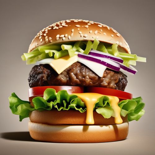 The classic Burger King Whopper is a flame-grilled beef burger topped with melted cheese, fresh lettuce, juicy tomatoes, pickles, onions, ketchup, and mayonnaise, all served on a toasted sesame seed bun.