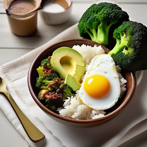 A wholesome and flavorful breakfast bowl featuring rice, avocado, egg, and broccoli. Packed with nutrients and perfect for a satisfying start to your day.