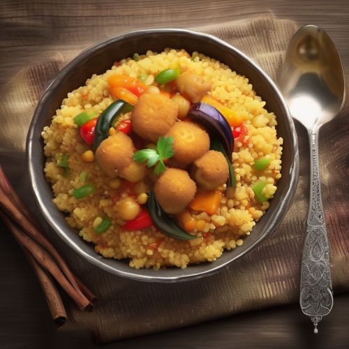 A traditional dish from Tunisia made with couscous, vegetables, and spices.