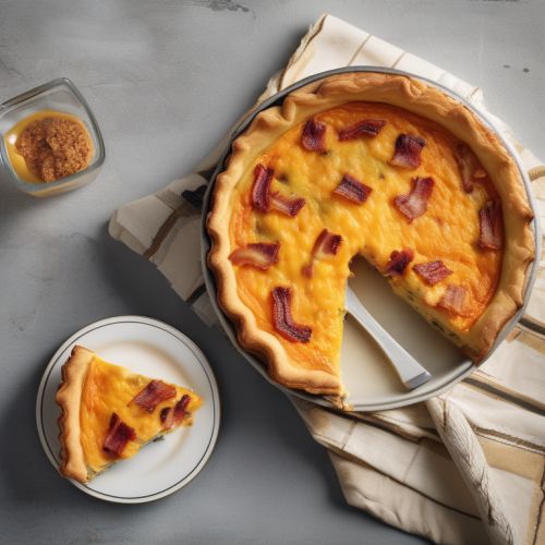 A delicious quiche made with bacon, eggs, flour, pumpkin, cheese, and milk.