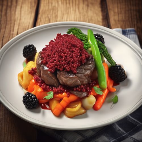 A flavorful stir-fry dish with tender horse meat and a tangy red caviar sauce.
