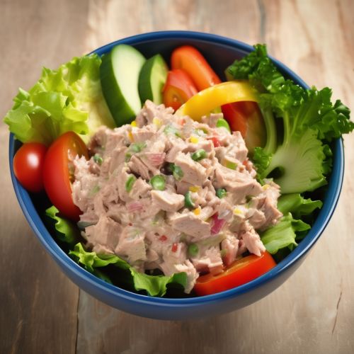 A refreshing salad with tuna, vegetables, and a tangy dressing.