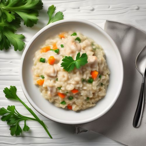 A delicious and creamy risotto made with chicken, vegetables, and aromatic spices.