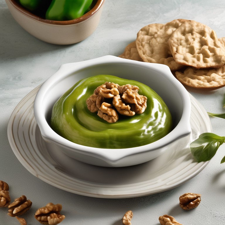 A creamy and tangy dip made with green peppers and walnuts