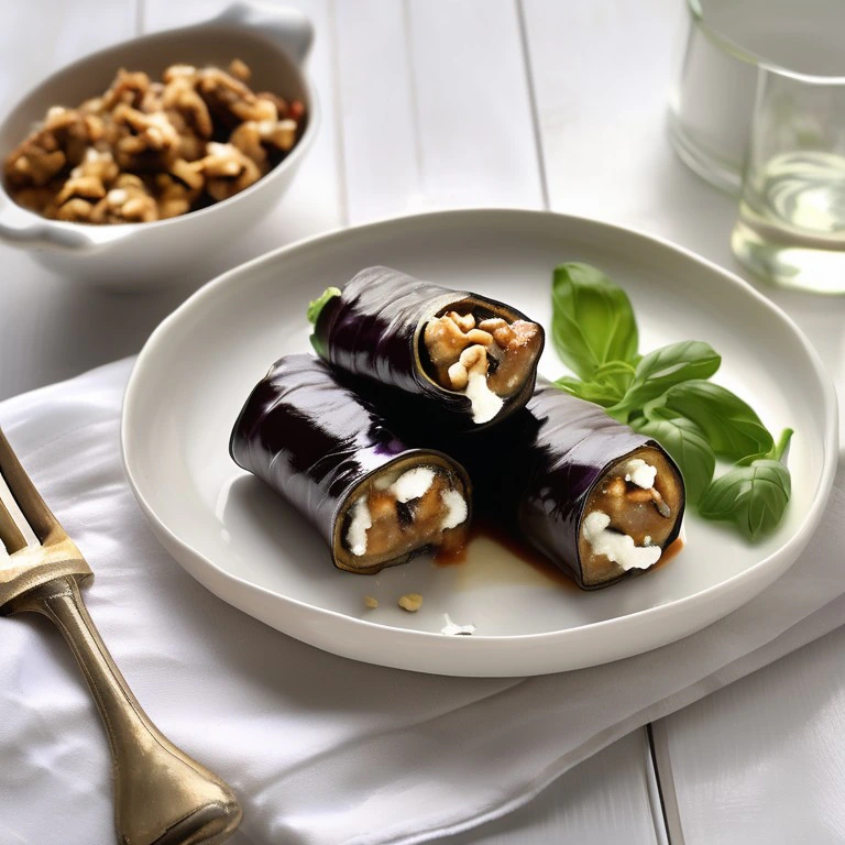 These delicious eggplant rolls are filled with creamy goat cheese, aromatic herbs, and crunchy walnuts. They make a perfect appetizer or a light lunch option.