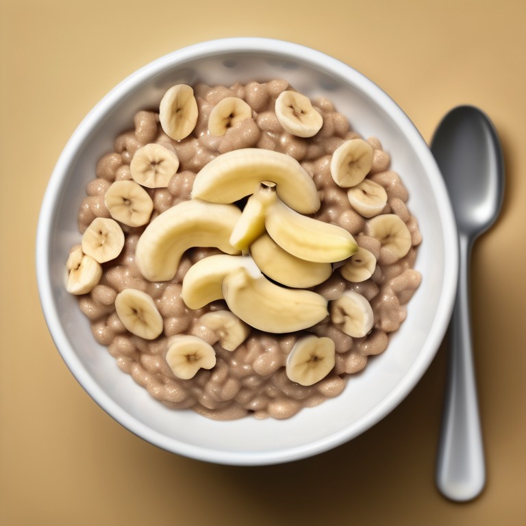 Whole-grain, high-fiber cereal with diced bananas and low-fat milk