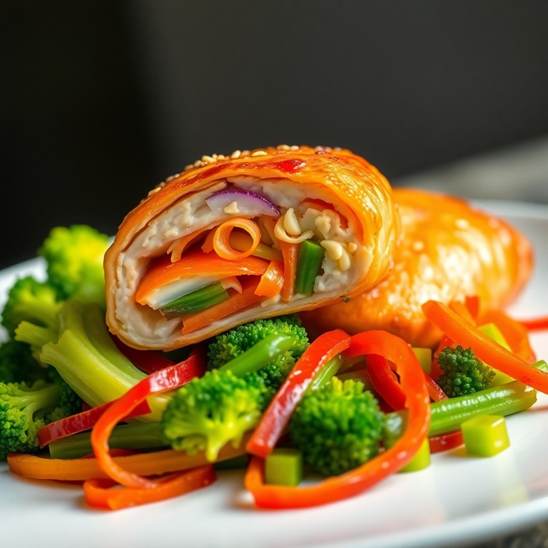- Rollo de Pollo Oriental Relleno con Verduras Ligeras