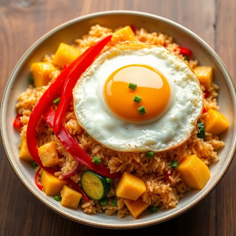 - Arroz Frito Indonés con Pimentón, Cebolla Morada y Huevo