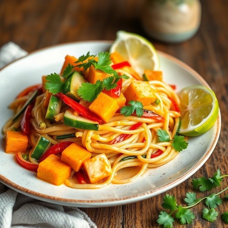 - Curry de verduras con fideos de arroz y toque de coco al estilo tailandés