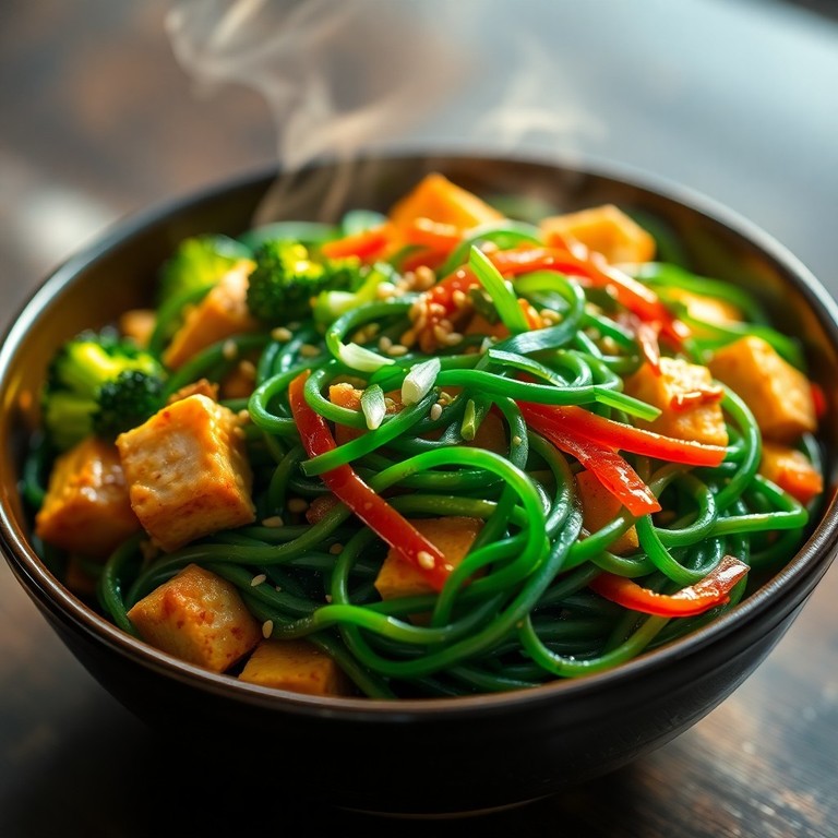 - Tallarines de Espirulina Estilo Asiático con Tofu y Verduras Salteadas