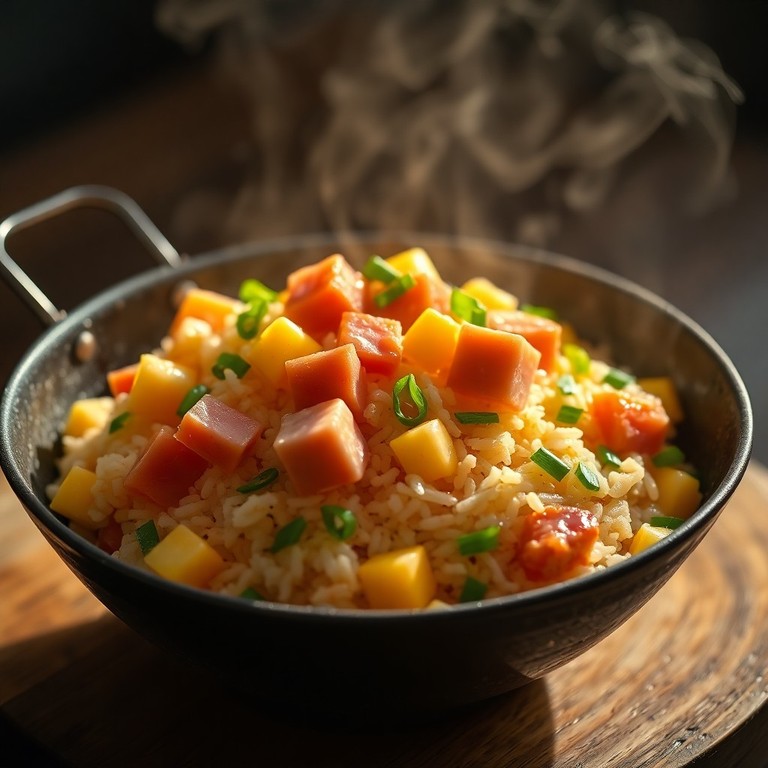 - Arroz Frito Fusión: Jamón y Queso Cremoso