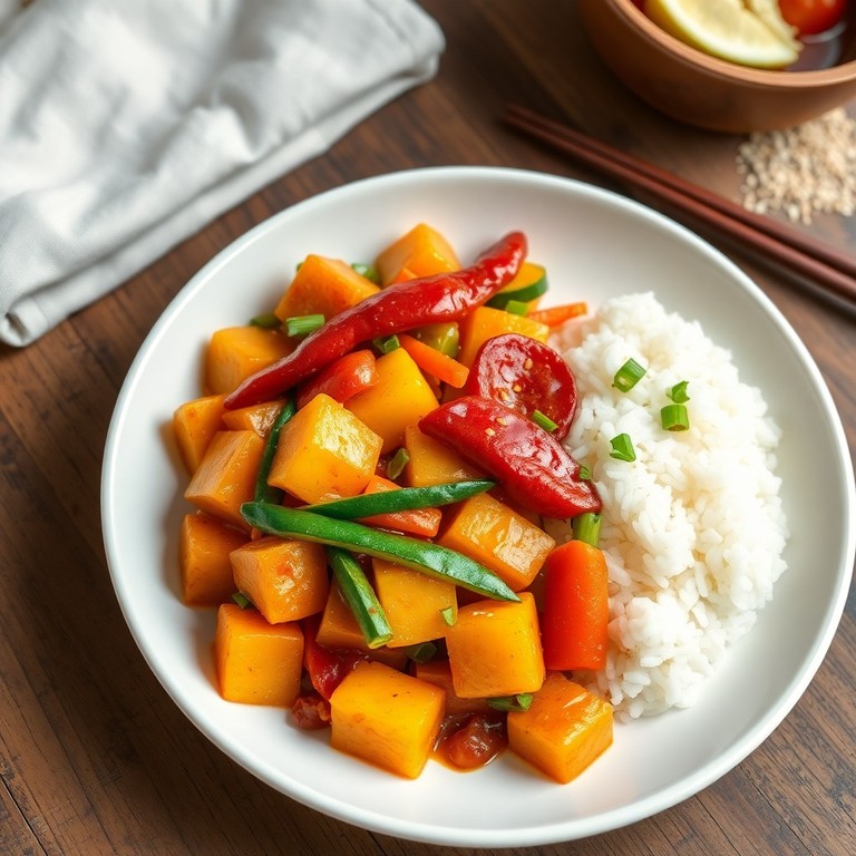 - Pescado Blanco Frito al Estilo Asiático con Salsa de Calabaza y Pimiento Rojo