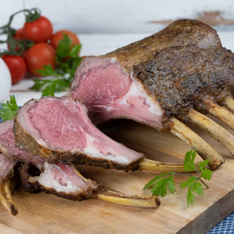 Rack De Cordero Lacado Con 5 Especias, Salsa De Tamarindo, Vegetales Encurtidos, Arroz Glutinoso Con Cebolla Caramelizada