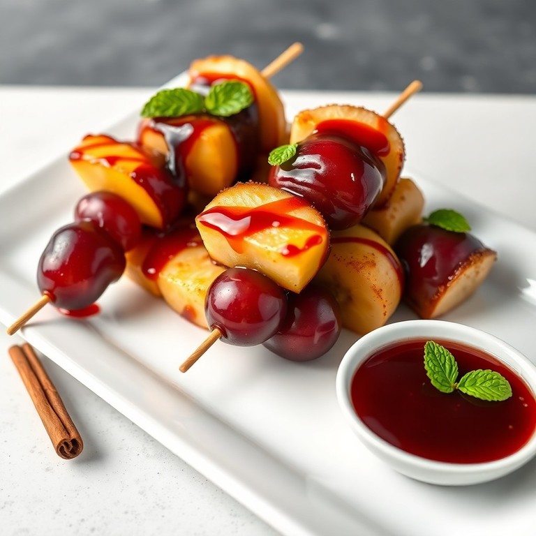 - Espetinho de frutas caramelizadas con vino tinto y especias