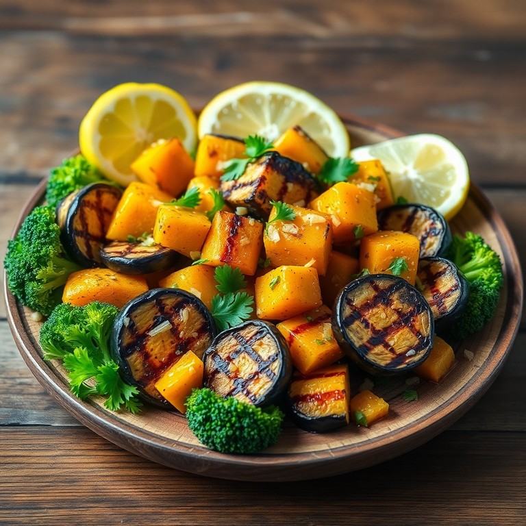 - Ensalada de Zapallo y Berenjena a la Parrilla con Ajo y Brócoli al Vapor