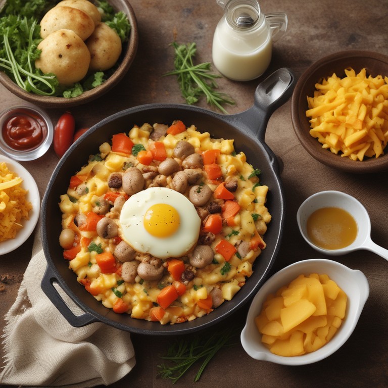 - Revoltillo de Papas, Zanahoria y Queso con Arepa y Embutido