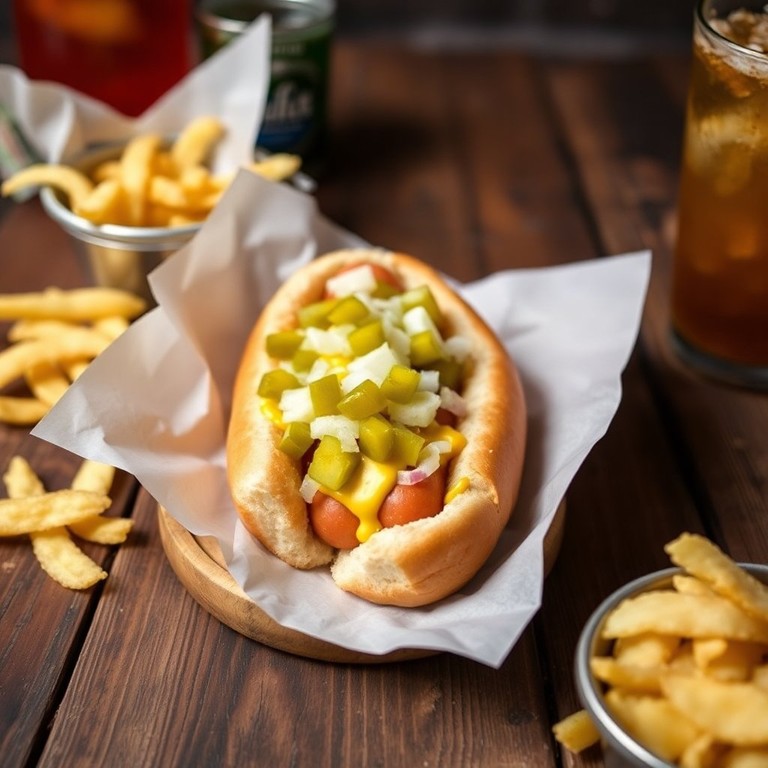 - Hot Dog Clásico con Mostaza y Pepinillos