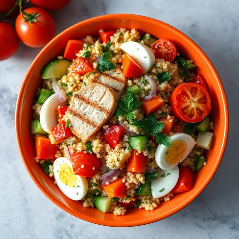 - Ensalada de Quinoa con Pollo, Claras de Huevo y Salsa Cremosa de Limón y Ajo