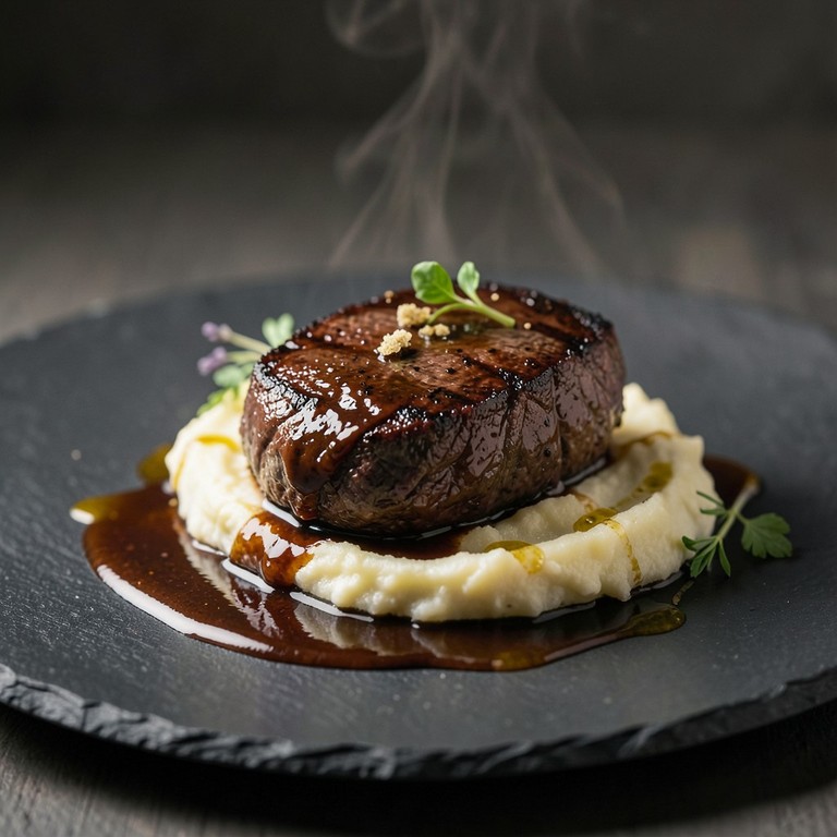 - Filete Mignon Sellado con Demiglace y Puré Trufado