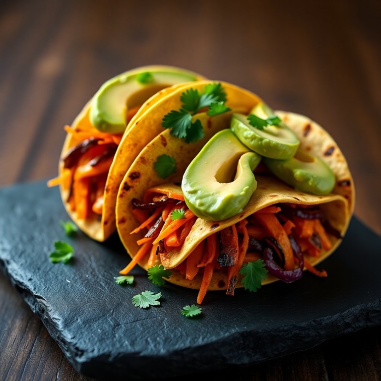 - Tacos Veganos de Aguacate y Zanahoria Crujiente con Pimentón Ahumado