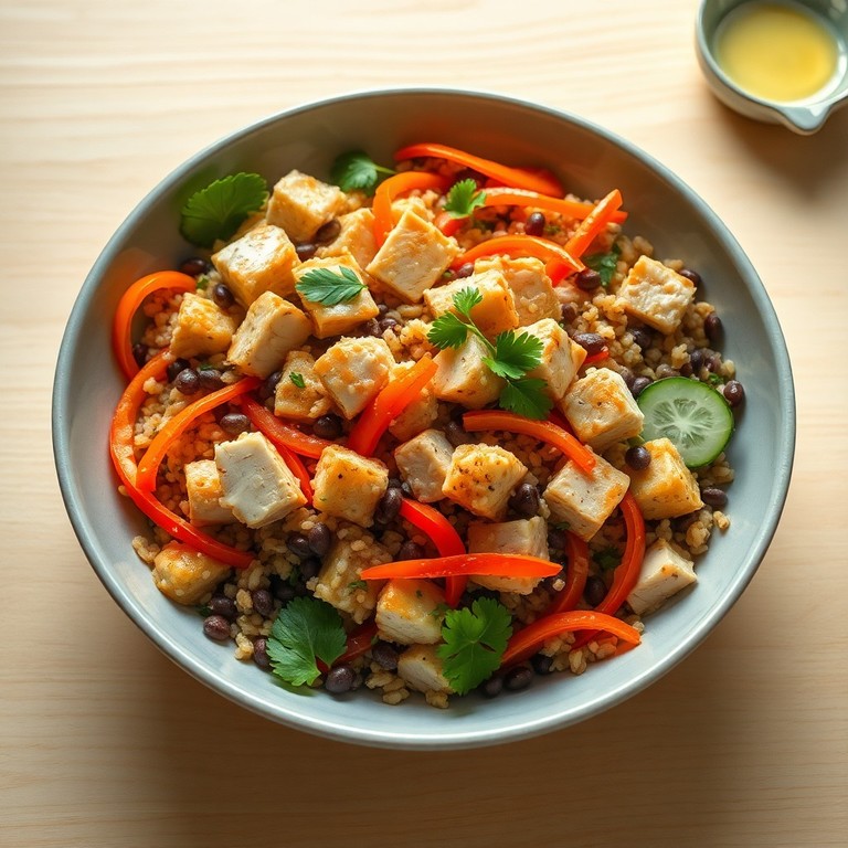 - Ensalada de Pollo, Lentejas y Arroz Integral con Salsa de Queso Light