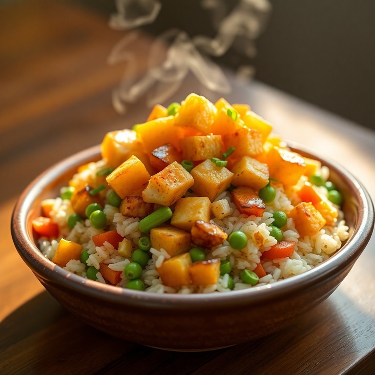 - Arroz Frito Reconfortante con Pollo y Patatas Crujientes
