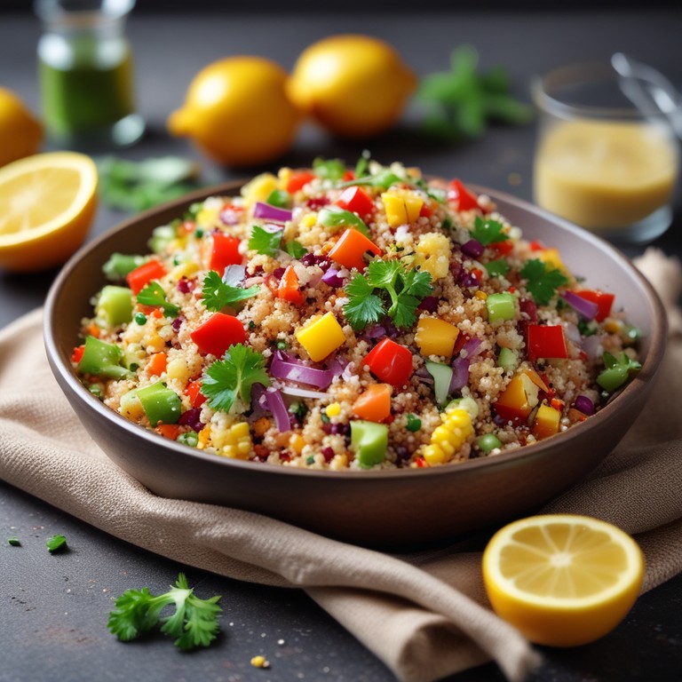 - Ensalada Colorida de Quinoa con Verduras Frescas y Aderezo Ligero