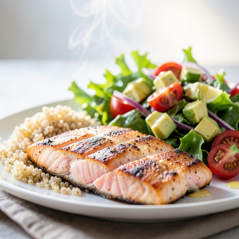 - Salmón a la Plancha con Quinoa y Ensalada Mediterránea
