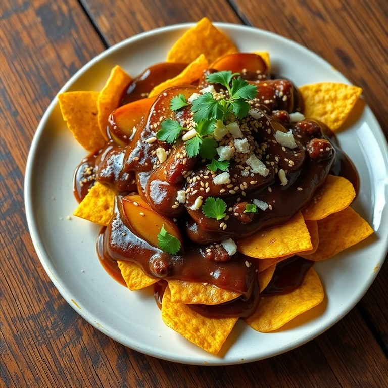 Chilaquiles de Mole Negro con Plátano Macho