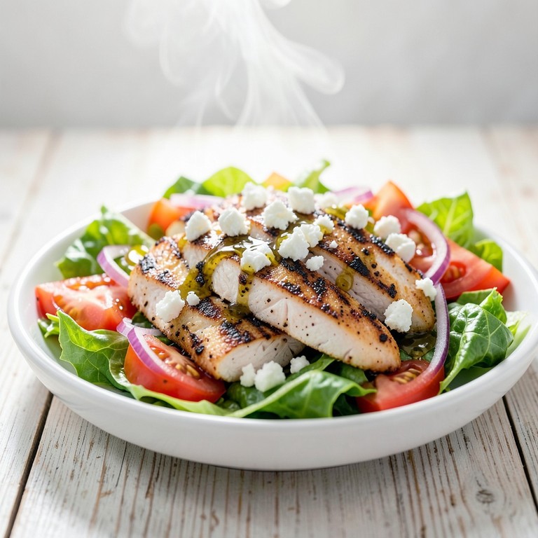 - Pechuga de Pollo a la Plancha con Ensalada Mediterránea Fresca