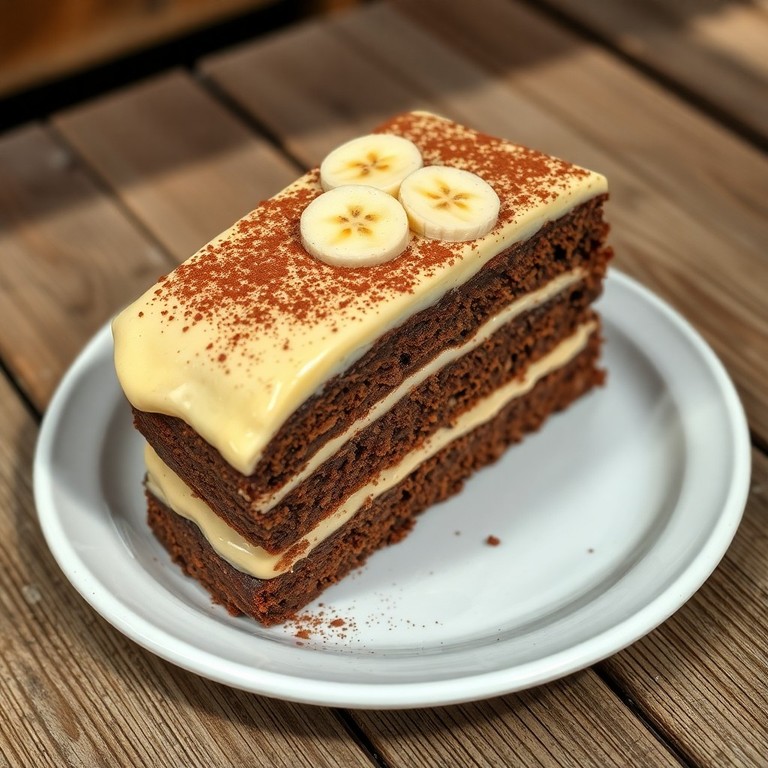 - Pastel de chocolate, café y avena con relleno cremoso en tres capas