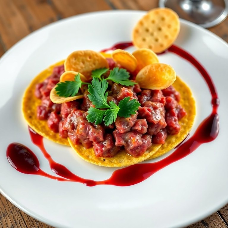 Tartar de carne clásica con reducción de vino tinto