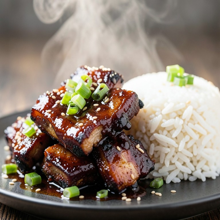 Costillas de Cerdo Estilo Oriental con Arroz Blanco