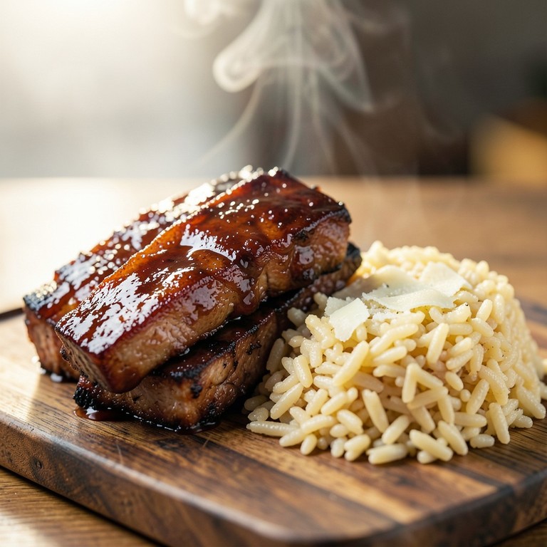 Costillas de Cerdo a la Barbacoa con Arroz Cremoso al Horno