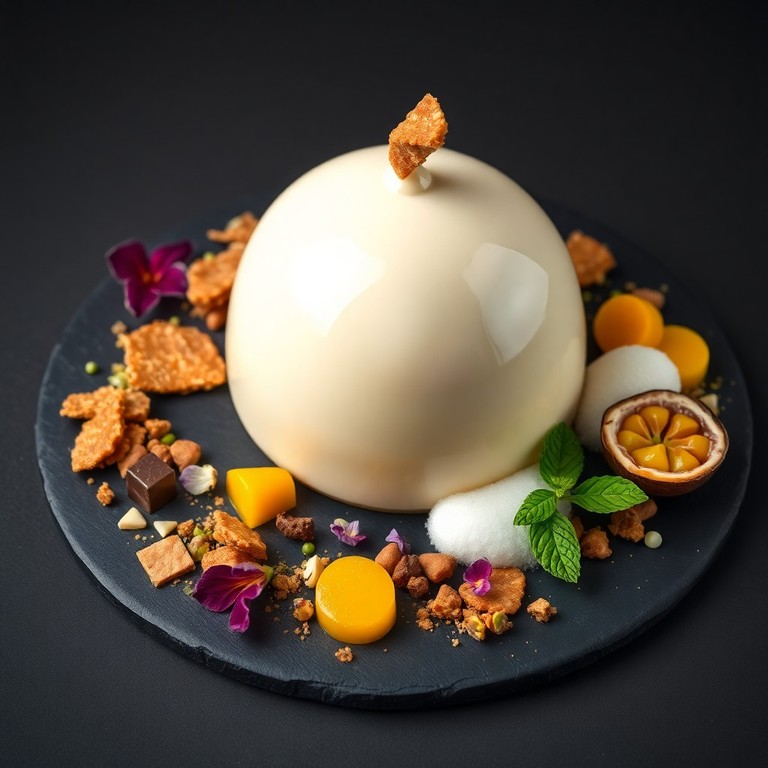 Cúpula de Chocolate Blanco y Cítricos con Texturas Variadas