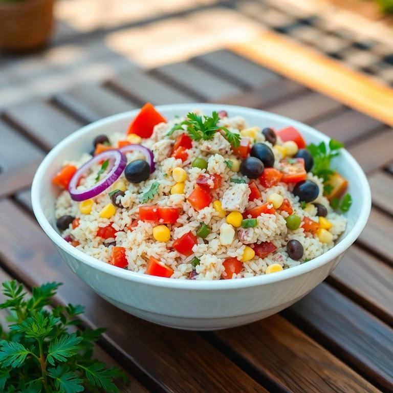Ensalada Fría de Arroz y Atún con Verduras Frescas