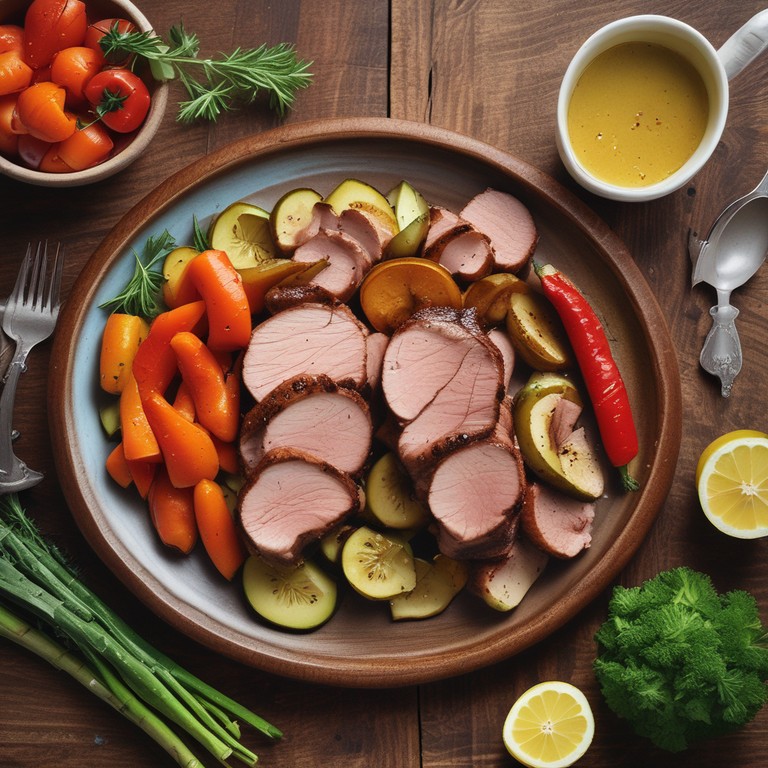 Solomillo de Cerdo a la Mostaza con Guarnición de Verduras Asadas