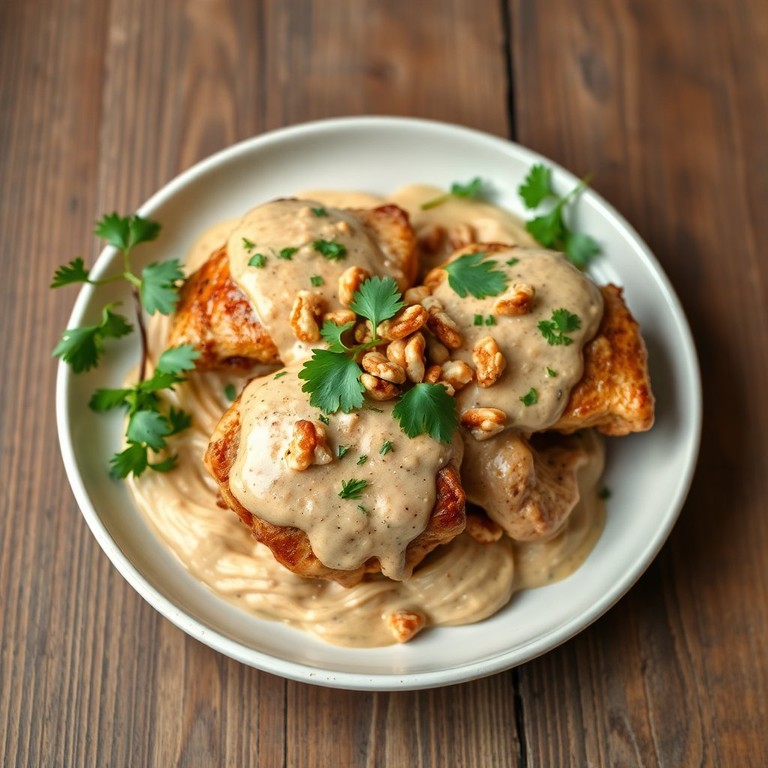 Pollo Asado con Salsa de Maní y Nueces Tostadas