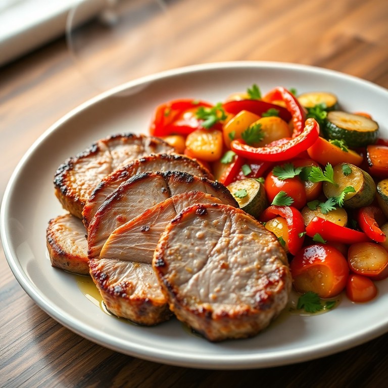 Solomillo de Cerdo a la Plancha con Salteado de Verduras Mediterráneas