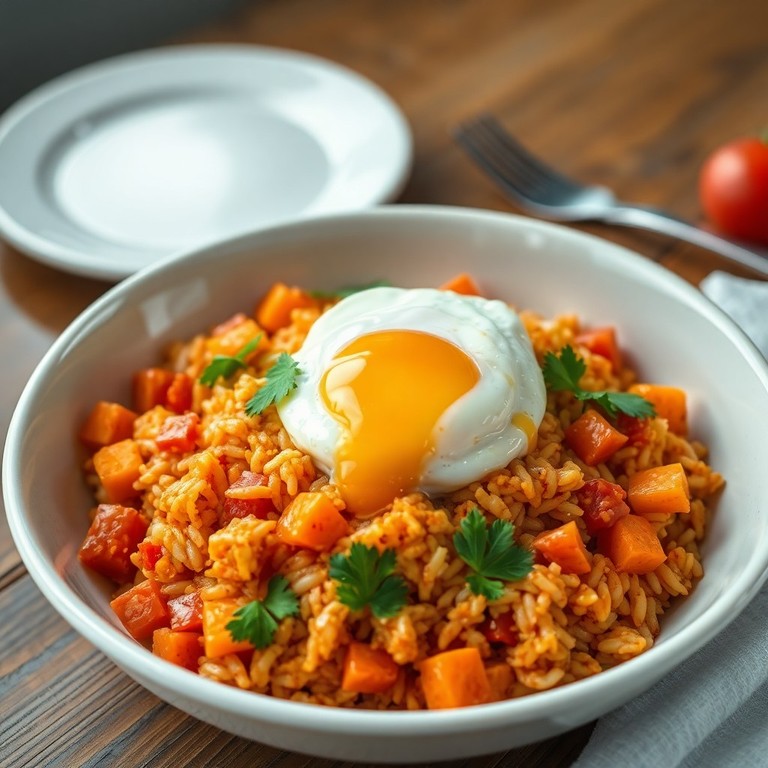 Arroz Frito con Porotos Negros y Salsa de Tomate