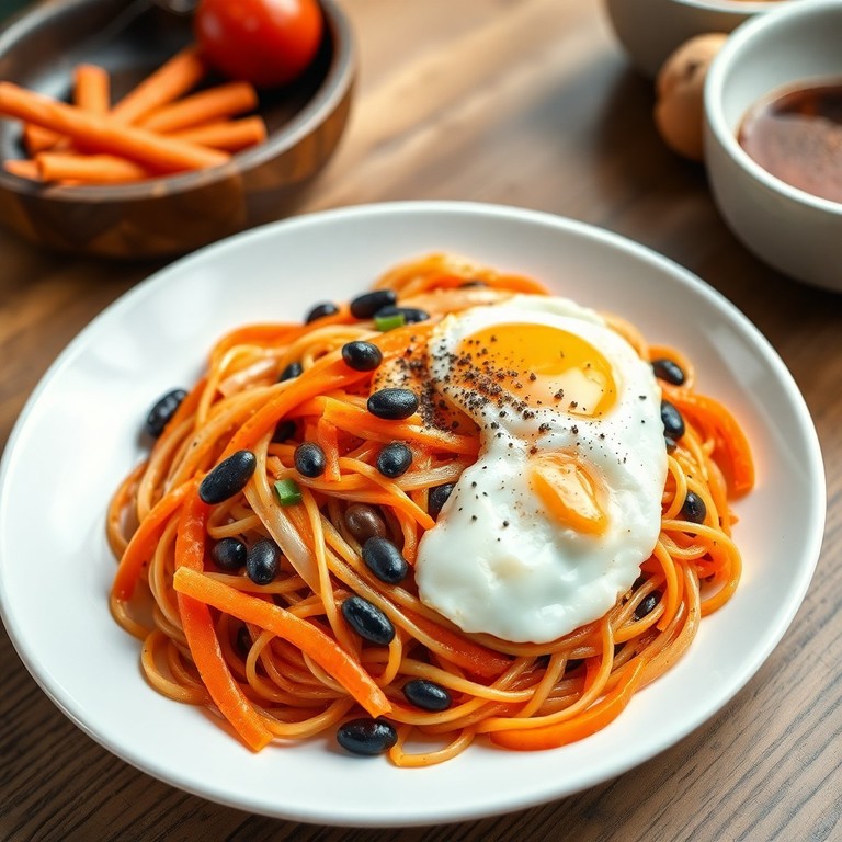 Fideos Salteados con Verduras y Porotos Negros