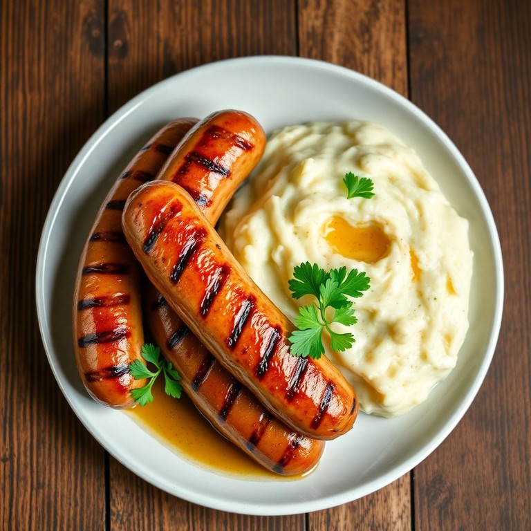 Saucisses Grillées avec Purée de Pommes de Terre Crémeuse