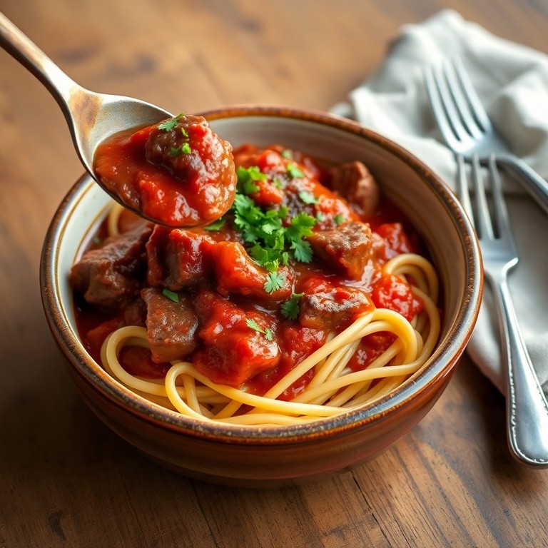 Estofado rico en salsa para fideos caseros