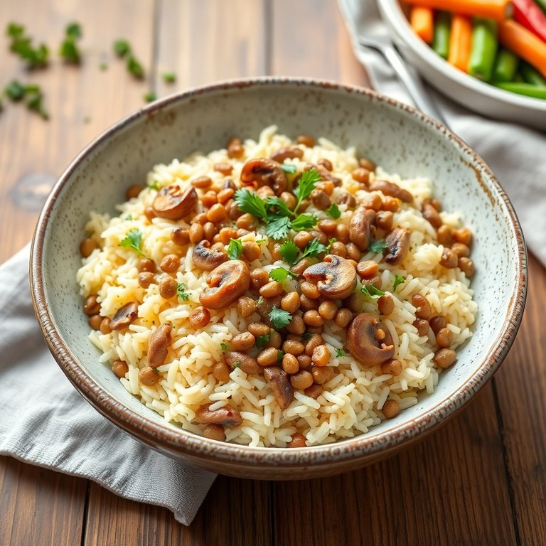 Riz Crémeux aux Lentilles et Champignons Sautés