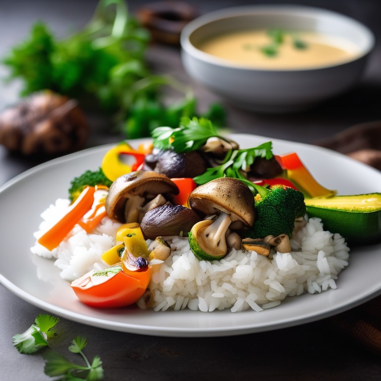 - Veganes Gericht mit Pilzen und anderem Gemüse